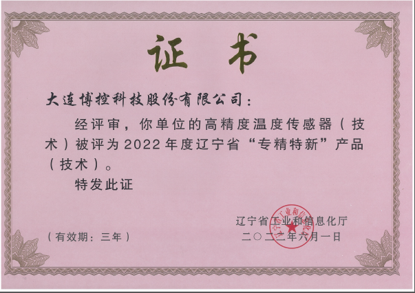 一、授予大連博控產品(技術)為2022年度遼寧省“專精特新”產品(技術)稱號。