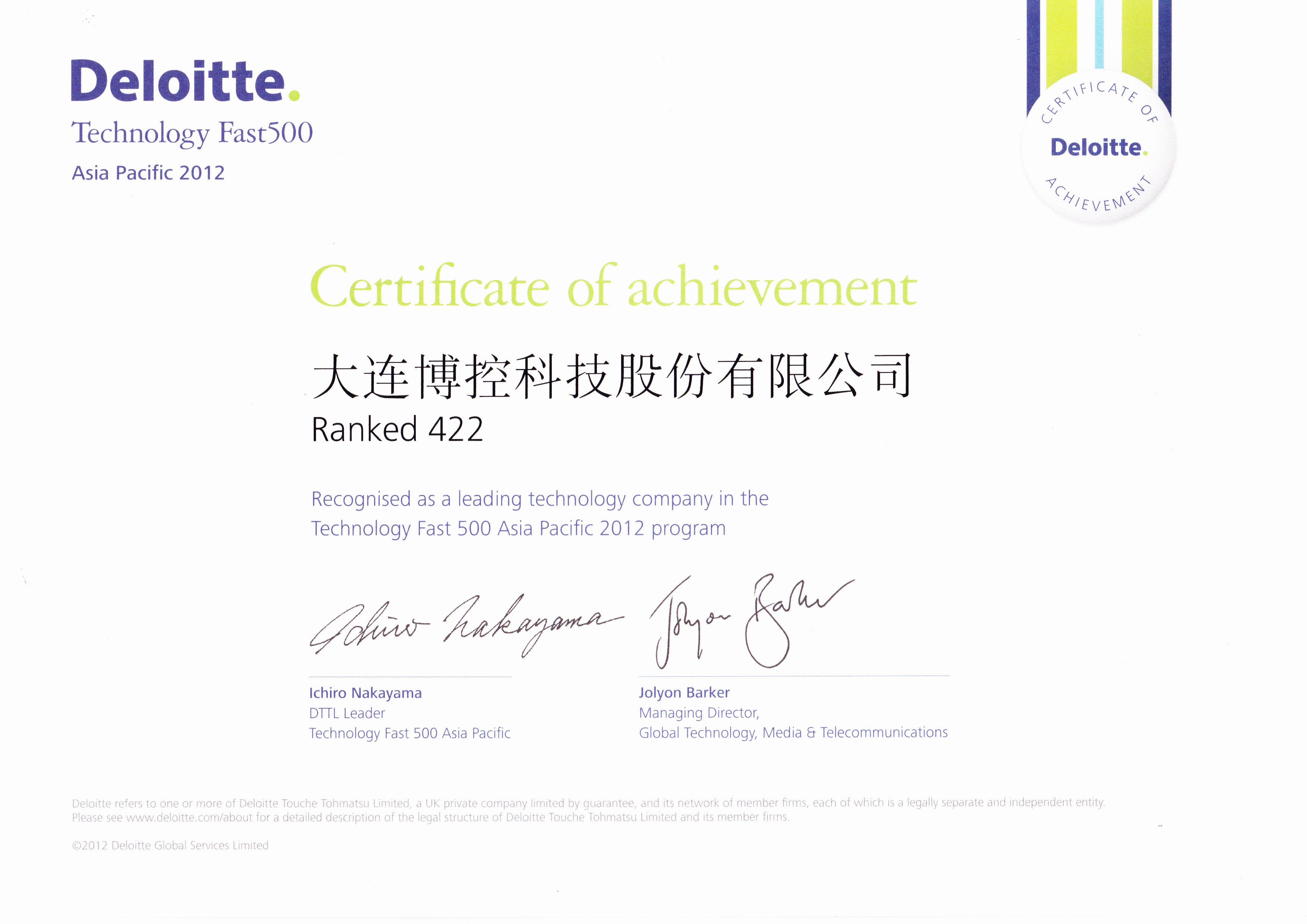 2013年5月7日我單位領導參加大連高新區-德勤戰略合作協議簽署儀式暨德勤-大連2013高科技、高成長20強評選啟動儀式,在此次大會上我單位獲得2012年度亞太地區500強稱號